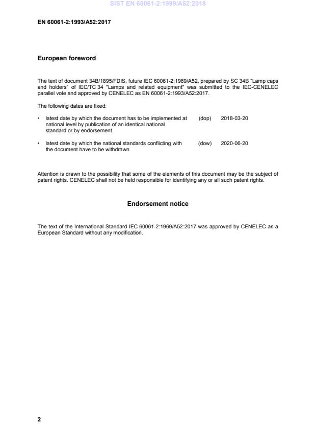 Ta slovenski standard je istoveten z: EN 60061-2:1993/A52:2017