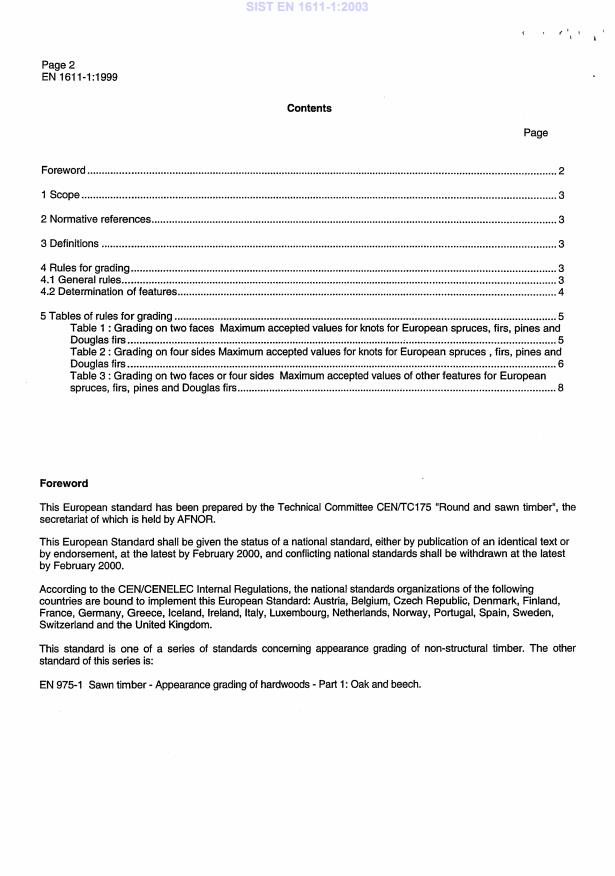 Keywords: EN 1611-1:1999, sawn timber, appearance grading, softwoods, spruce, fir, pine, Douglas fir, CEN, European standard.