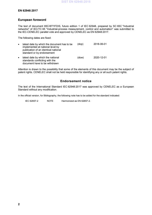 SIST EN 62948:2018 is classified under the following ICS (International Classification for Standards) categories: 25.040.40 - Industrial process measurement and control; 35.110 - Networking. The ICS classification helps identify the subject area and facilitates finding related standards.