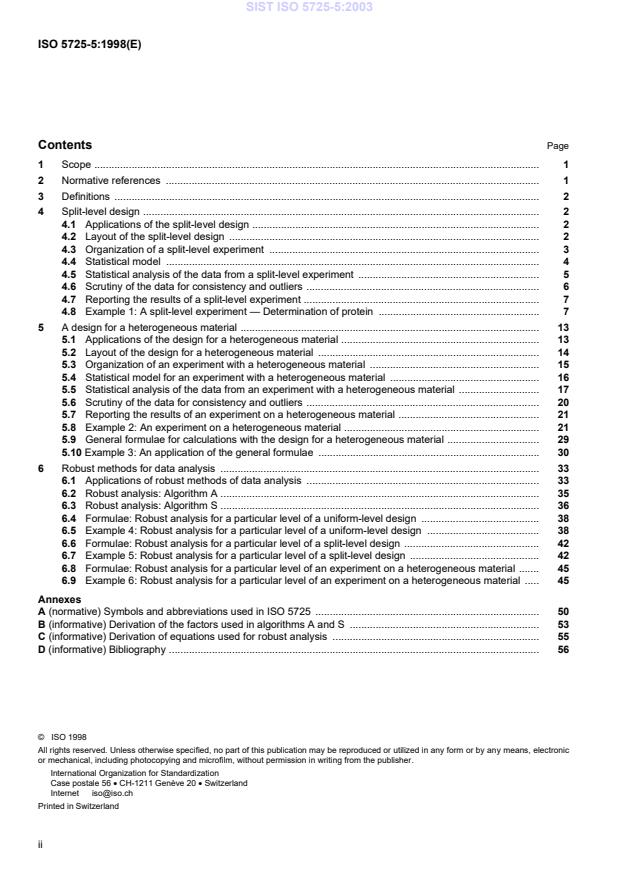 SIST ISO 5725-5:2003 is a standard published by the Slovenian Institute for Standardization (SIST). Its full title is "Accuracy (trueness and precision) of measurement methods and results -- Part 5: Alternative methods for the determination of the precision of a standard measurement method". This standard covers: This part of ISO 5725 — provides detailed descriptions of alternatives to the basic method for determining the repeatability and reproducibility standard deviations of a standard measurement method, namely the split-level design and a design for heterogeneous materials; — describes the use of robust methods for analysing the results of precision experiments without using outlier tests to exclude data from the calculations, and in particular, the detailed use of one such method. This part of ISO 5725 complements ISO 5725-2 by providing alternative designs that may be of more value in some situations than the basic design given in ISO 5725-2, and by providing a robust method of analysis that gives estimates of the repeatability and reproducibility standard deviations that are less dependent on the data analyst's judgement than those given by the methods described in ISO 5725-2.