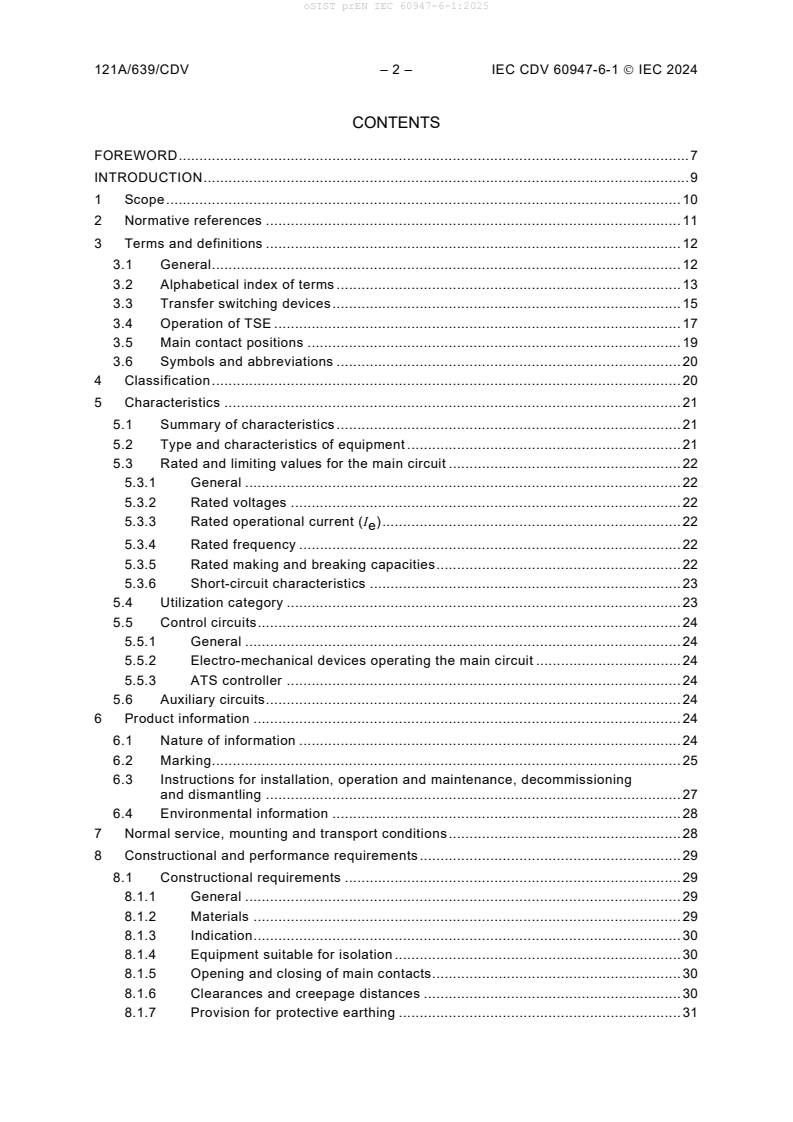 Keywords: IEC 60947-6-1, transfer switching equipment, low-voltage switchgear, automatic transfer switch, ATS controller, BTSE, EMC, short-circuit testing, type tests, rated operational current, product marking, installation and maintenance.
