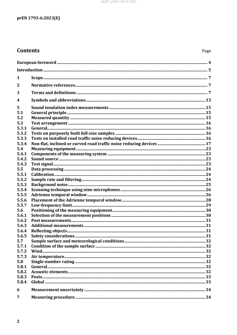 EN 1793-6:2025, published by CEN (CEN/TC 226), specifies a test method to determine the intrinsic airborne sound insulation of road traffic noise reducing devices. The standard defines the sound insulation index as the key quantity and is applicable to both laboratory and in‑situ measurements under direct sound field conditions. Results are reported as a function of frequency in one-third octave bands (qualification range: 200 Hz to 5 kHz). The method supersedes EN 1793-6:2018+A1:2021 and introduces several technical updates to support consistent product qualification and verification.