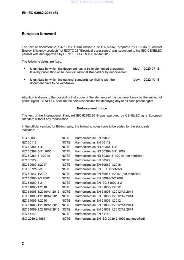 SIST EN IEC 62962:2020 is classified under the following ICS (International Classification for Standards) categories: 27.015 - Energy efficiency. Energy conservation in general; 29.120.99 - Other electrical accessories. The ICS classification helps identify the subject area and facilitates finding related standards.