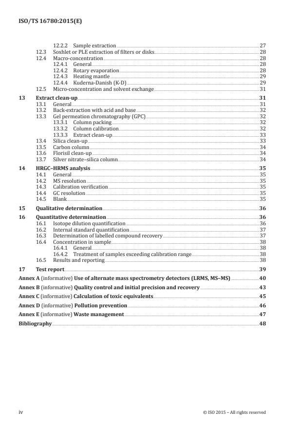 - Quality assurance/quality control: Spiking, labelled recovery assessment, method blanks, QC check samples, and performance criteria (Clause 9).