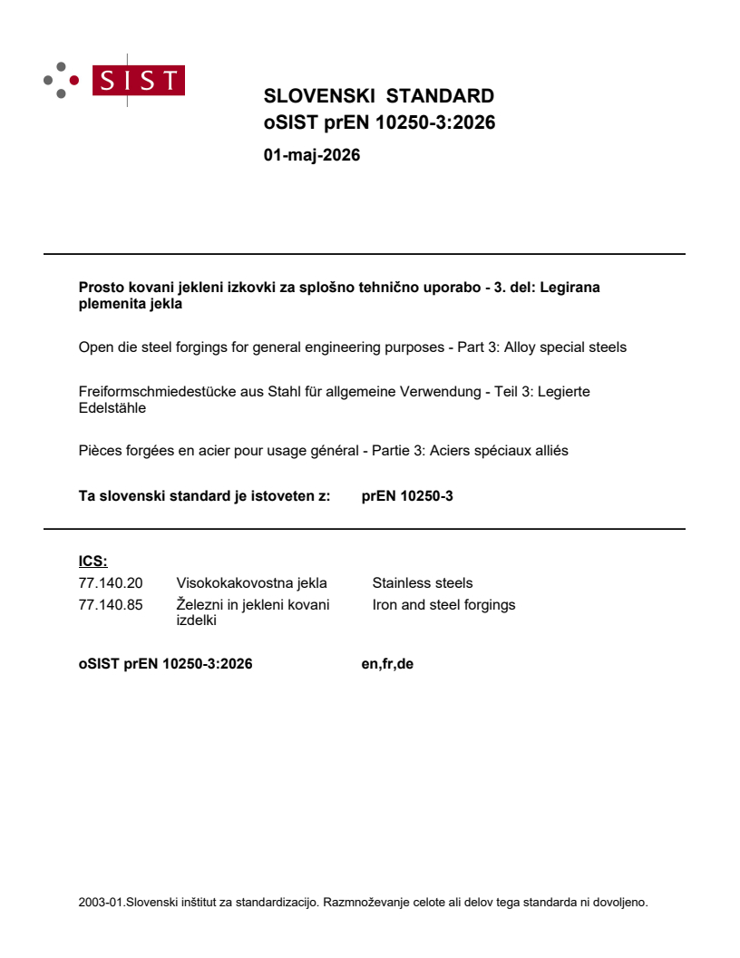 Ta slovenski standard je istoveten z: prEN 10250-3