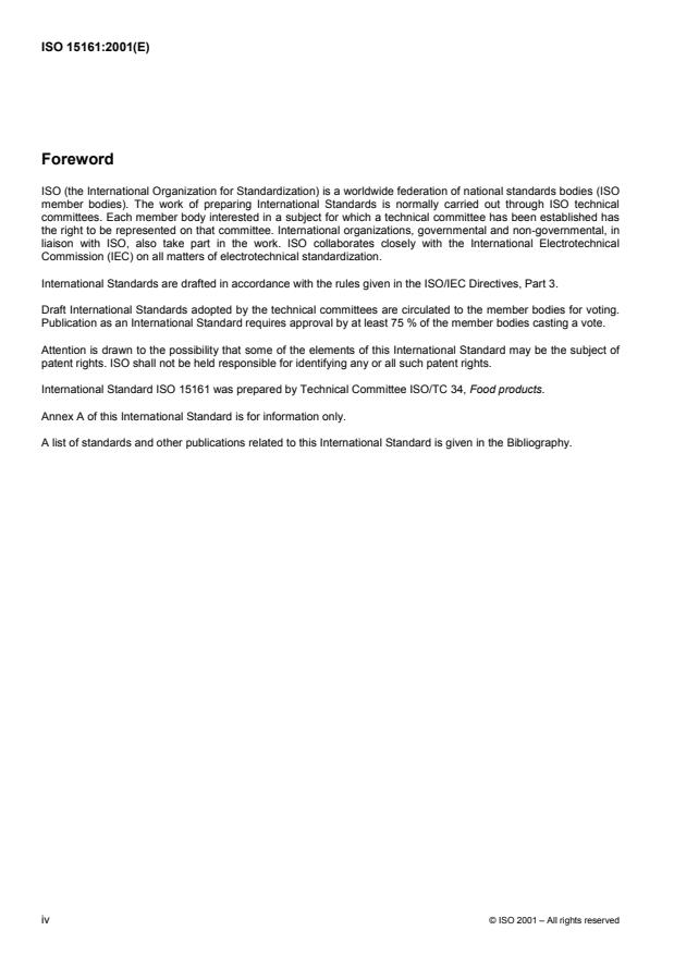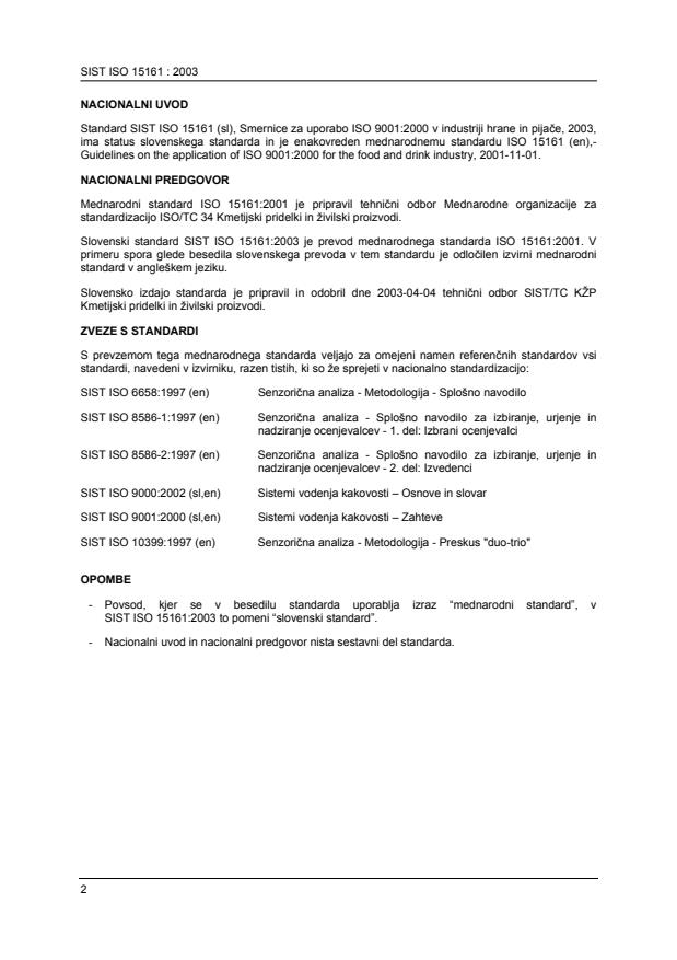 ISO 15161:2001 is a standard published by the International Organization for Standardization (ISO). Its full title is "Guidelines on the application of ISO 9001:2000 for the food and drink industry". This standard covers: Guidelines on the application of ISO 9001:2000 for the food and drink industry