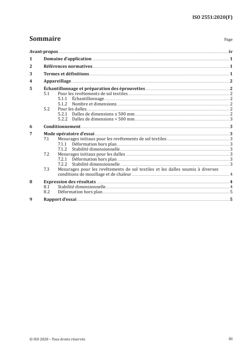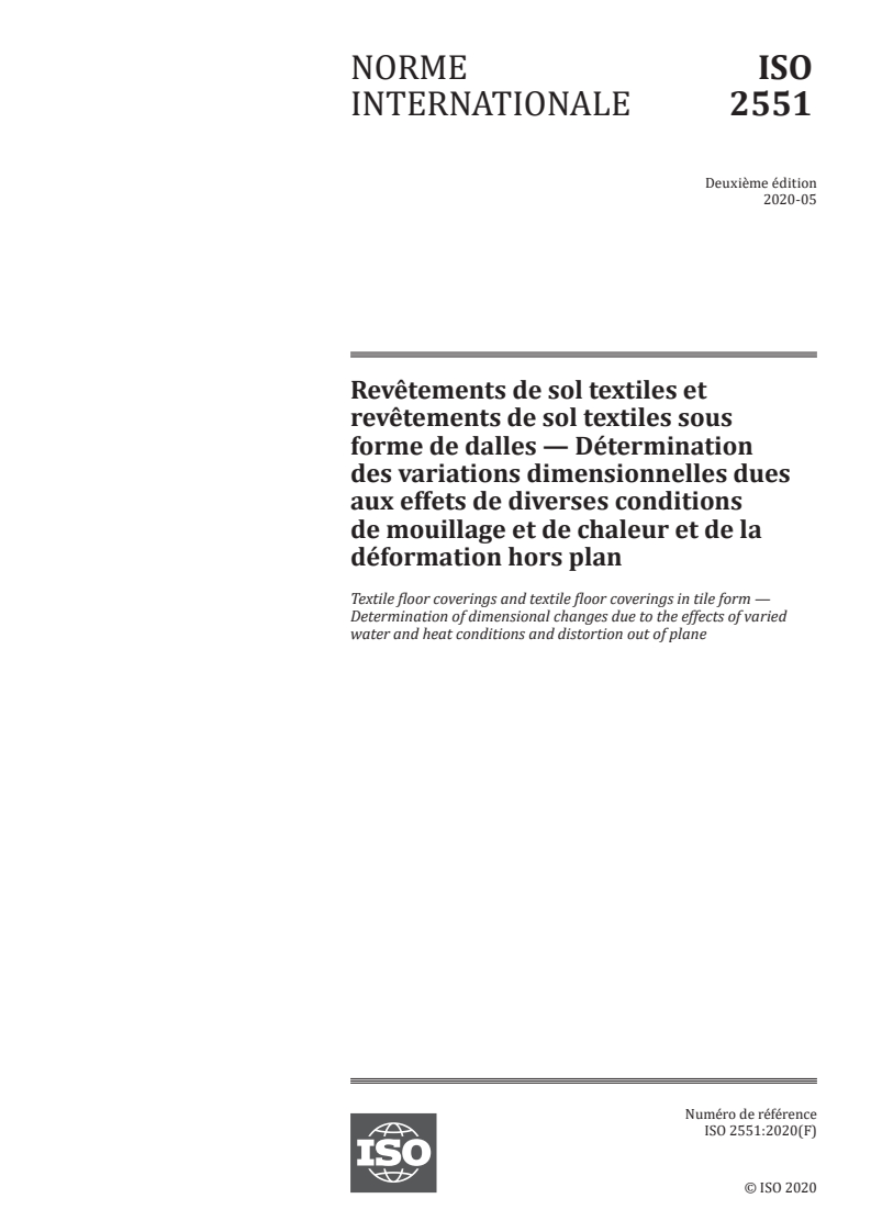ISO 2551:2020 - Textile floor coverings and textile floor coverings in tile form — Determination of dimensional changes due to the effects of varied water and heat conditions and distortion out of plane/12/2020