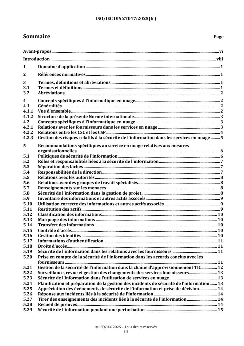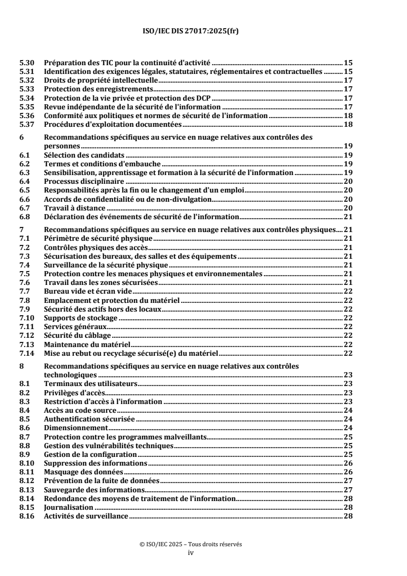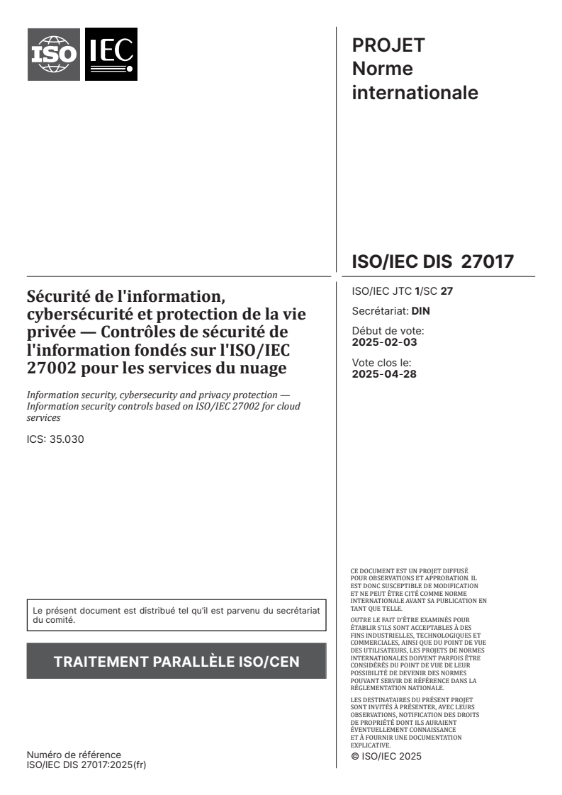 ISO/IEC FDIS 27017 - Sécurité de l'information, cybersécurité et protection de la vie privée — Contrôles de sécurité de l'information fondés sur l'ISO/IEC 27002 pour les services du nuage/23/2025