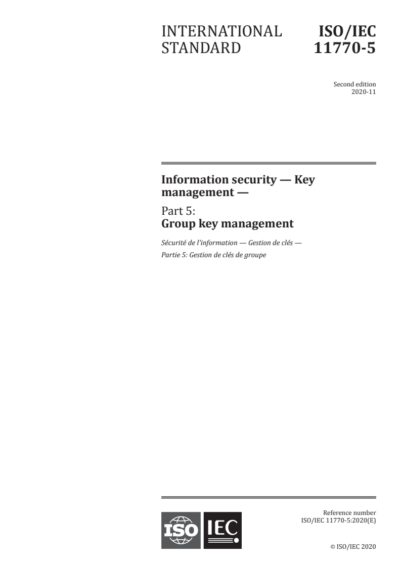 ISO/IEC 11770-5:2020 - Information security — Key management — Part 5: Group key management/10/2020
