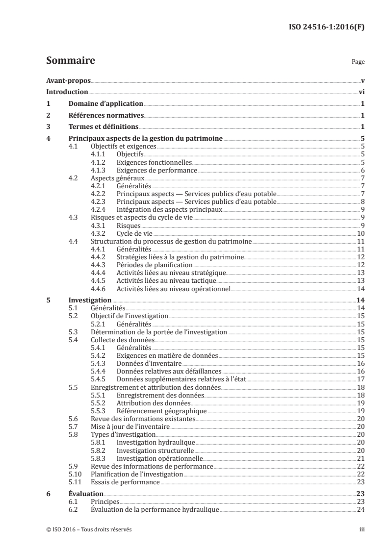 ISO 24516-1:2016 - Lignes directrices pour la gestion d'actifs des systemes d'eaux usées et d'eau potable